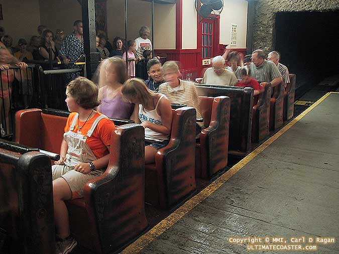 | Arragement | 3 cars per train. Riders are arranged 2 across in 3 rows for a total of 18 riders per train. |