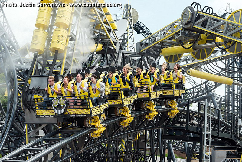 | Arragement | 4 trains with 4 cars per train. Riders are arranged 4 across in a single row for a total of 16 riders per train. |